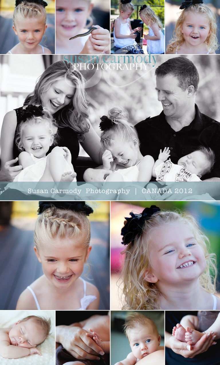 After relocating to Australia in January of this year, it was with a huge thrill that I was able to return to Canada for a month of work with some wonderful clients. To some people I told, the idea of such a long commute for work seemed strange and surprising, for me it was exciting and gratifying. This family below and the rest of my clients from August in Canada are THE reason I made sure I returned . I have worked with this family since their first little girl was a year old and it was magic this year to see them all again, with the addition of their new baby boy. I laughed over and over, not just at how much fun they were to shoot, but whilst editing those funny, but oh so cute, little girls.